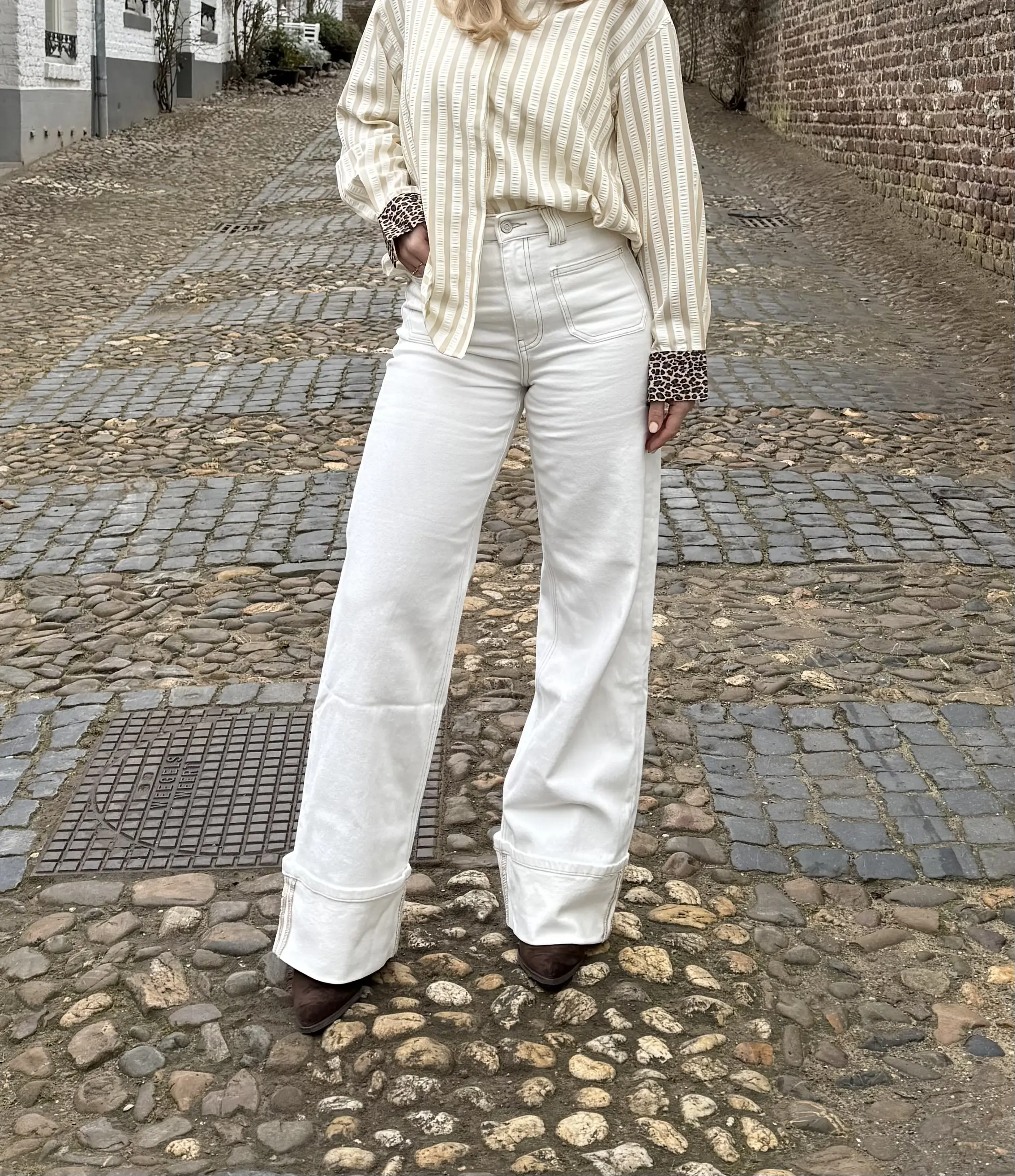 Cleo wide leg jeans is een frisse witte wide leg jeans met een moderne en tijdloze uitstraling. De wijde pijpen zorgen voor een trendy silhouet, terwijl de stevige denim met lichte stretch comfortabel draagt. Perfect voor een clean en stijlvolle look en makkelijk te combineren met zowel basic tops als elegante blouses.