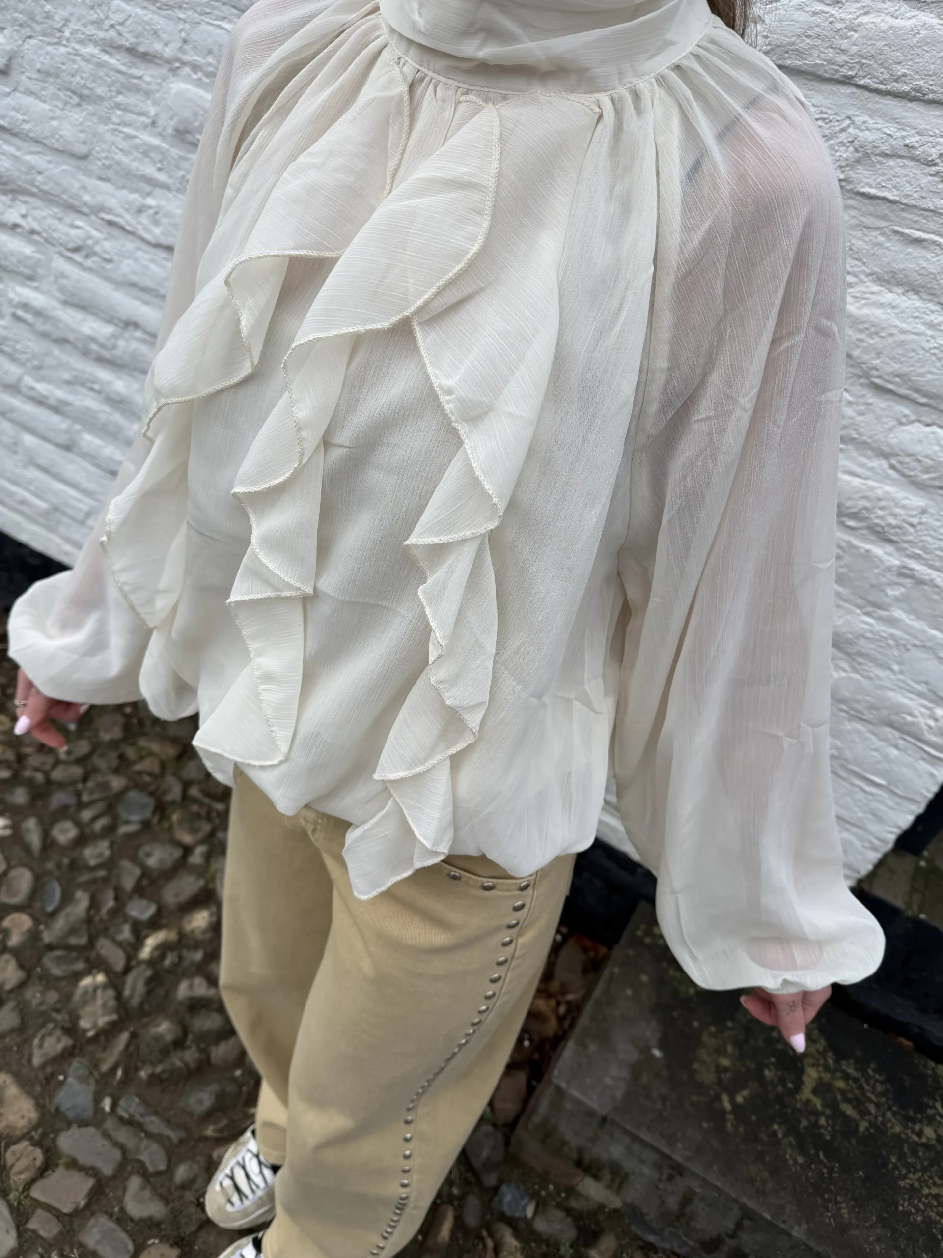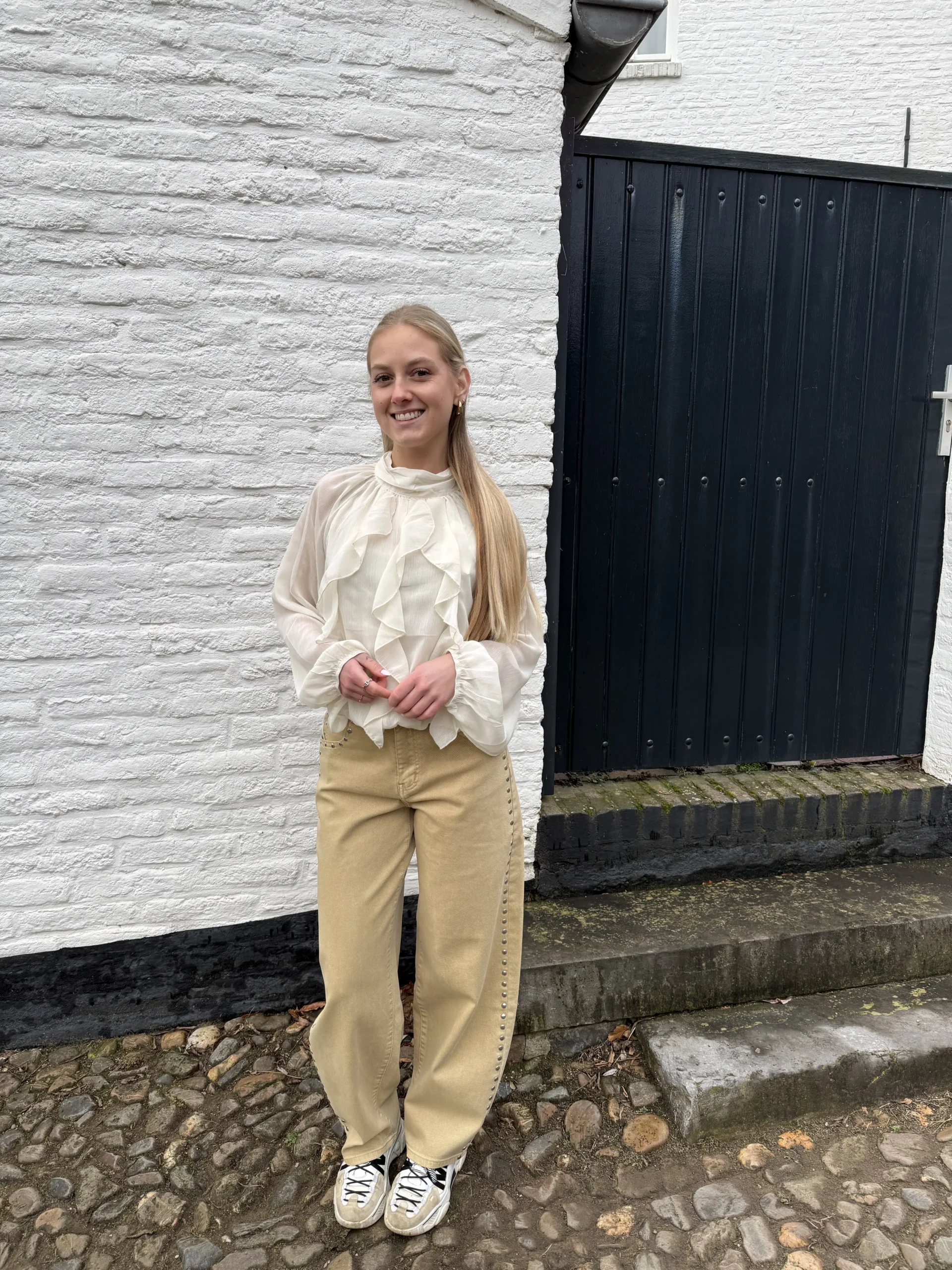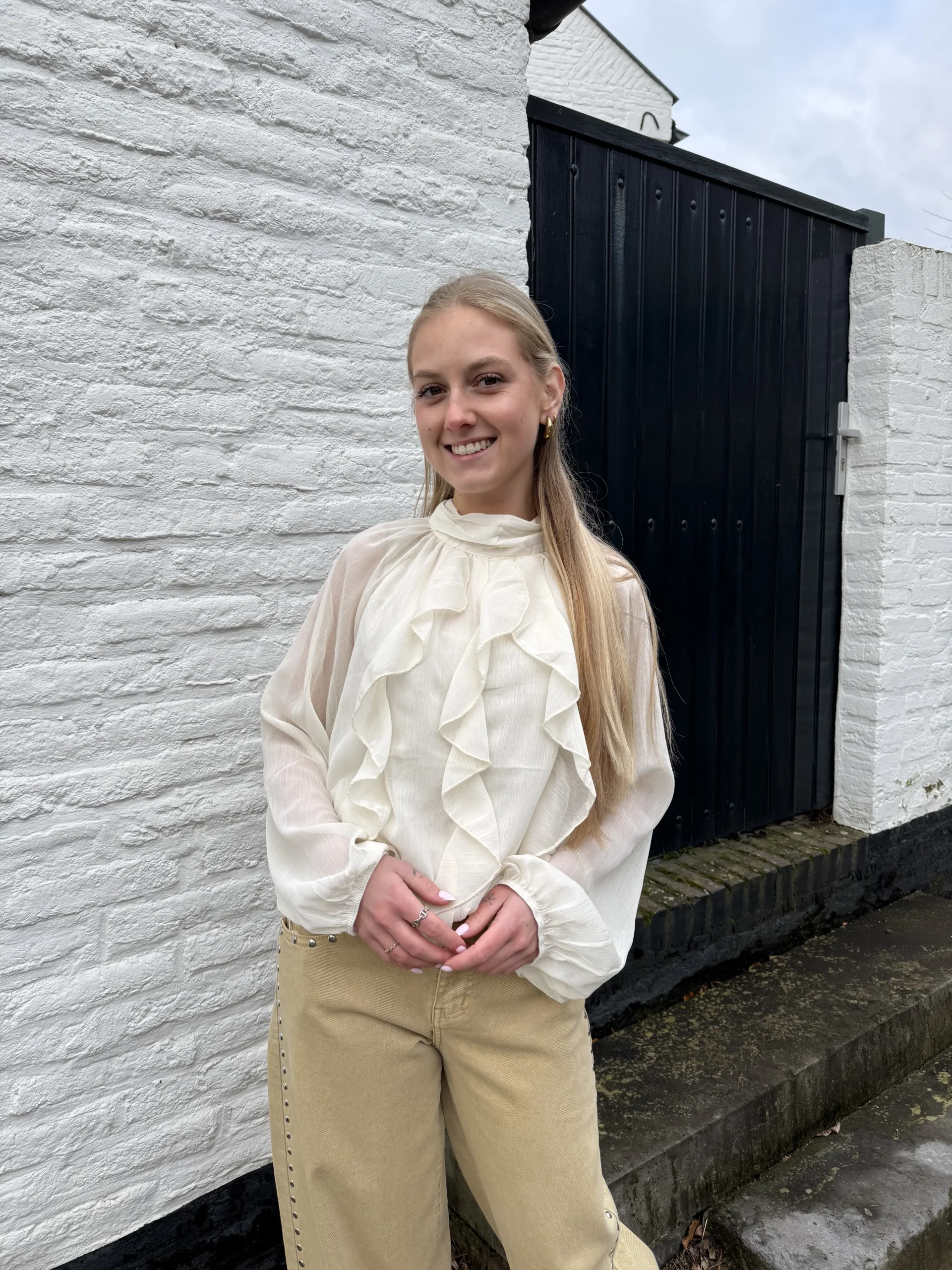 Emma blouse is een elegante crème kleurige blouse met een tijdloze en vrouwelijke uitstraling. Dankzij het clean design is deze blouse perfect voor zowel een stijlvolle werklook als een chique outfit voor een avondje uit. Makkelijk te combineren met een pantalon, jeans of rok en daardoor een echte allrounder in je garderobe.