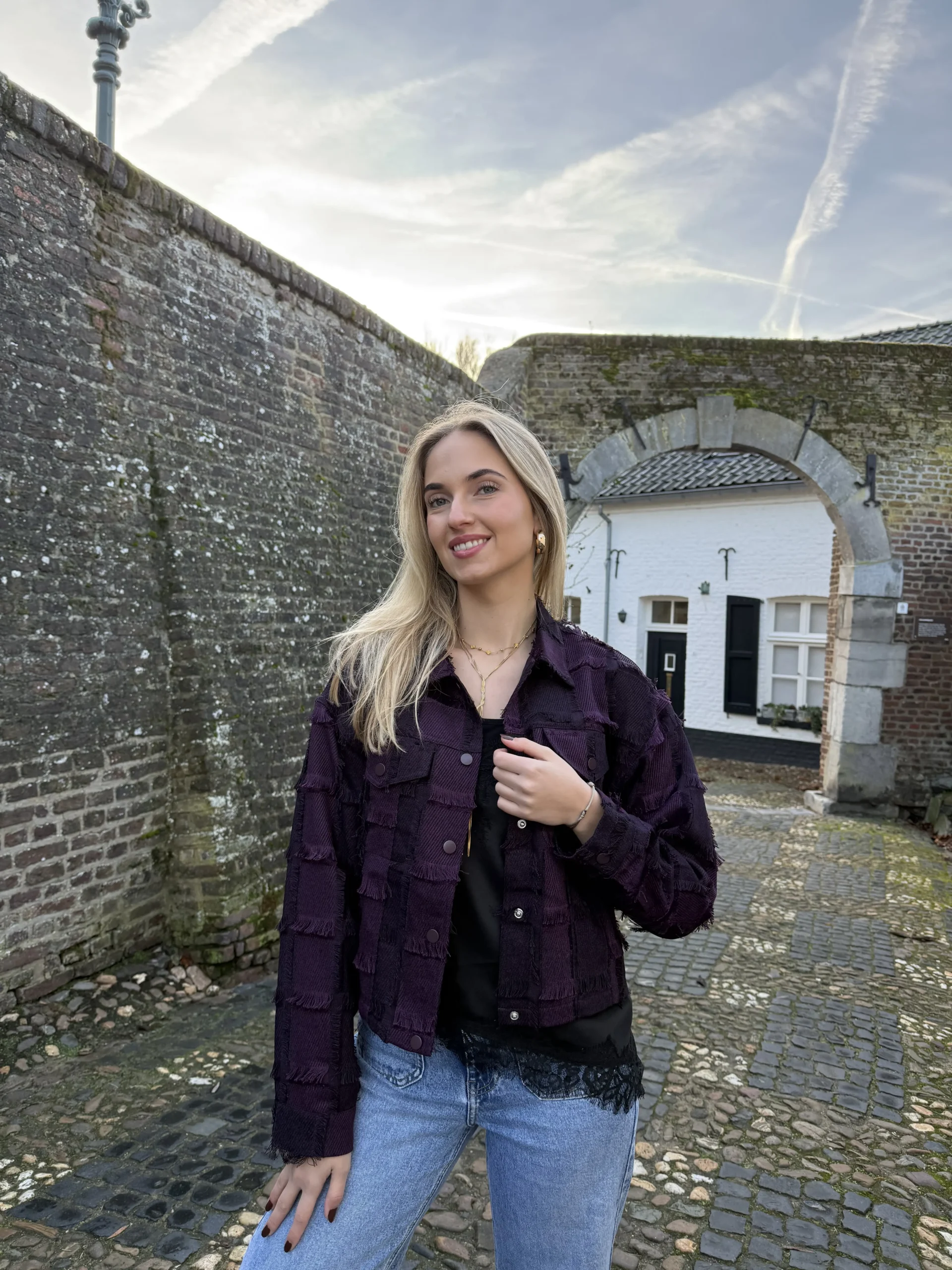 ✔ Cropped jasje met fringed stof