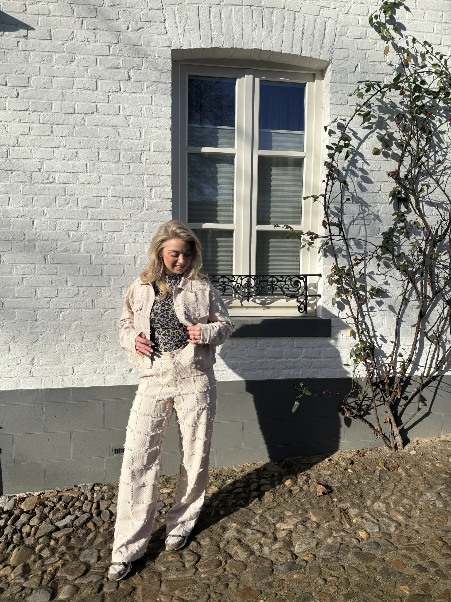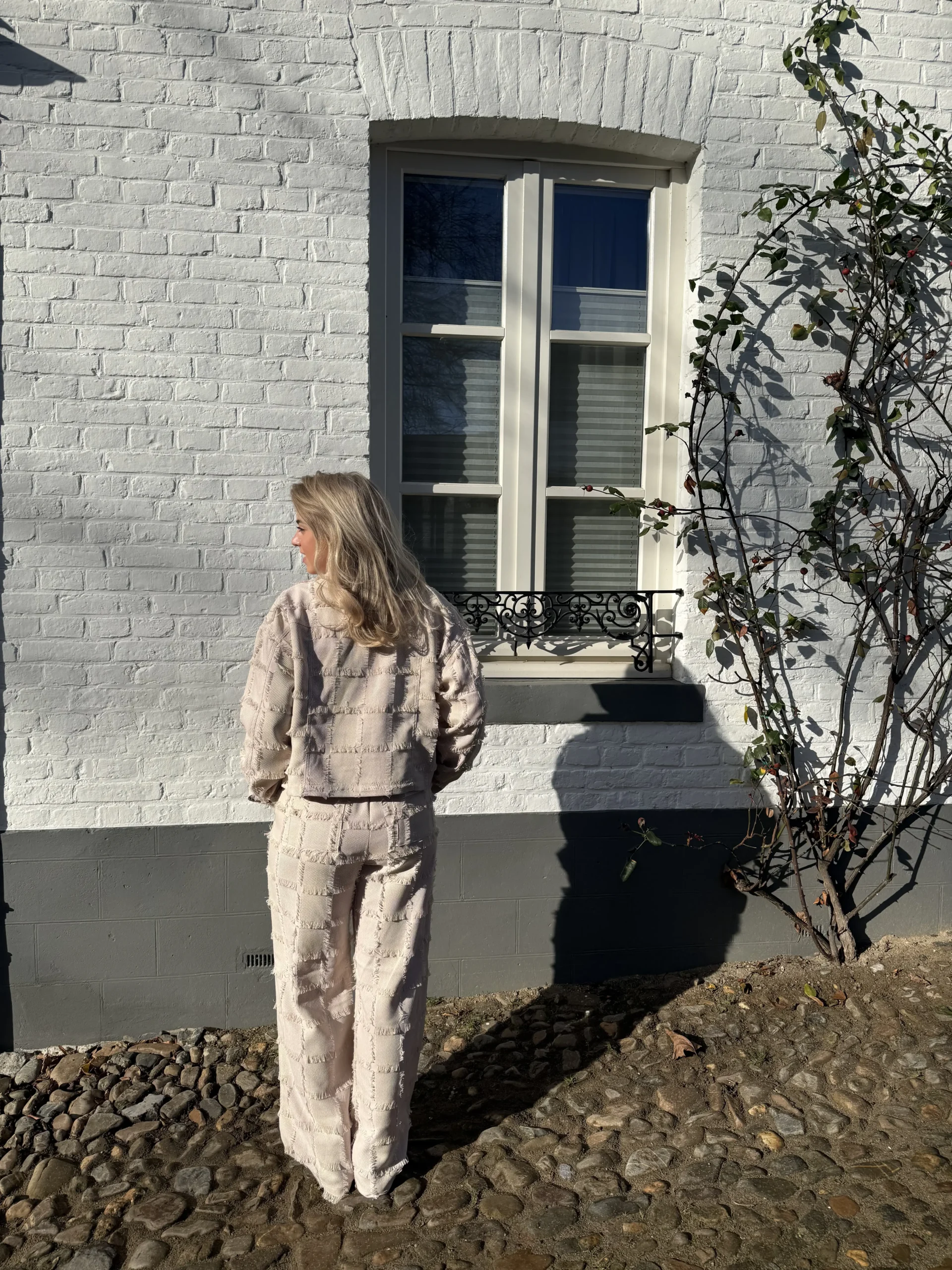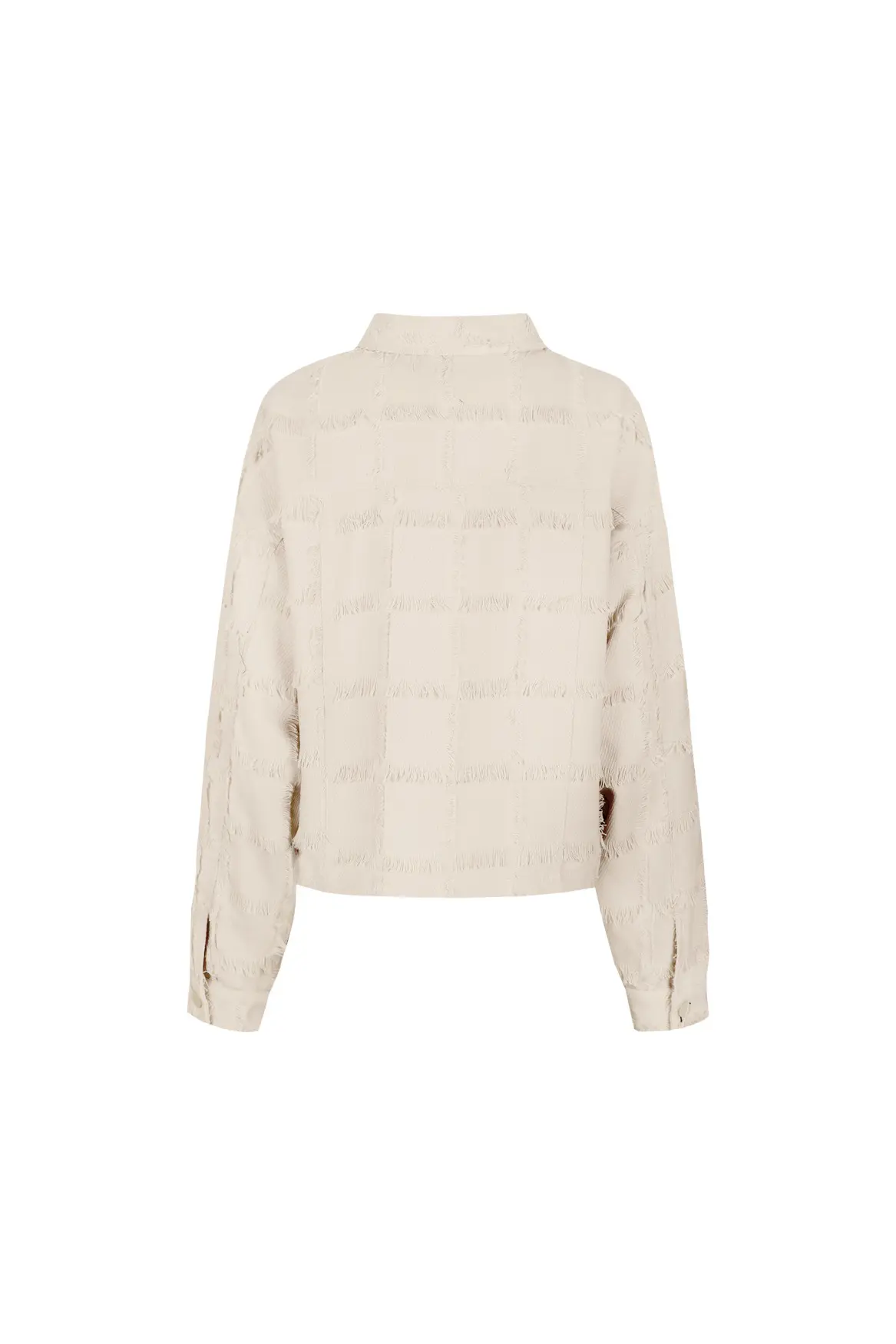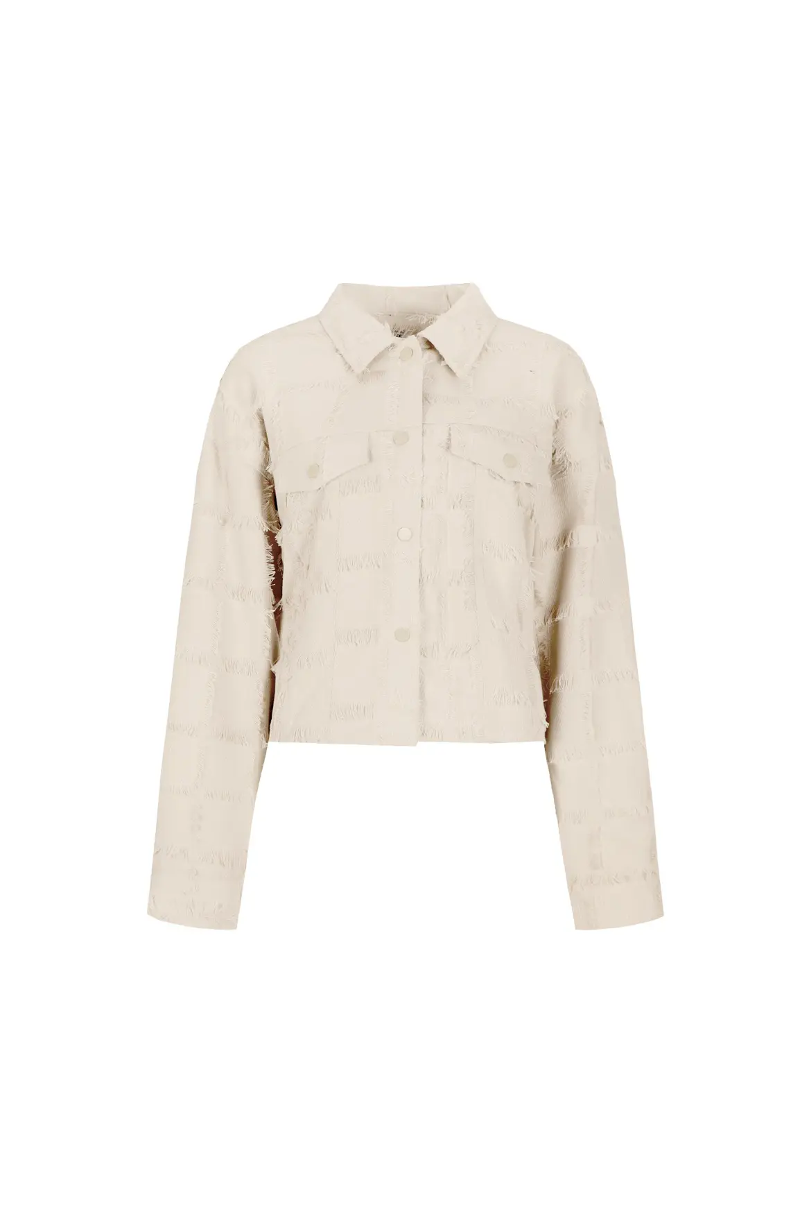 Camel jacket is een gestructureerd en opvallend kort jasje in een stijlvolle beige kleur met een krachtige uitstraling. De fringed stof geeft het jasje een uniek oppervlak en maakt het een echte eyecatcher. Dankzij de cropped fit combineer je dit item perfect met een high waisted broek of met de bijpassende Kalina broek voor een complete set. De grote borstzakken en drukknopen maken het speelse design helemaal af.