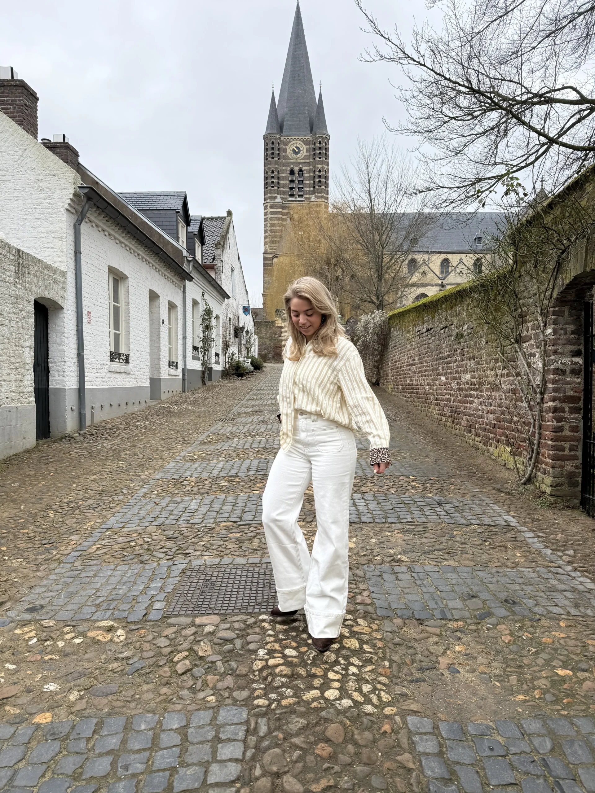 Deze beige-wit gestreepte blouse is een echte eyecatcher dankzij de panterprint kraag en manchetten. De combinatie van strepen met het speelse leopard detail zorgt voor een trendy en fashion-forward uitstraling. De blouse heeft een oversized pasvorm en valt wat langer, waardoor hij zowel los als half ingestopt supermooi draagt. Perfect voor een statement look met een jeans of pantalon.