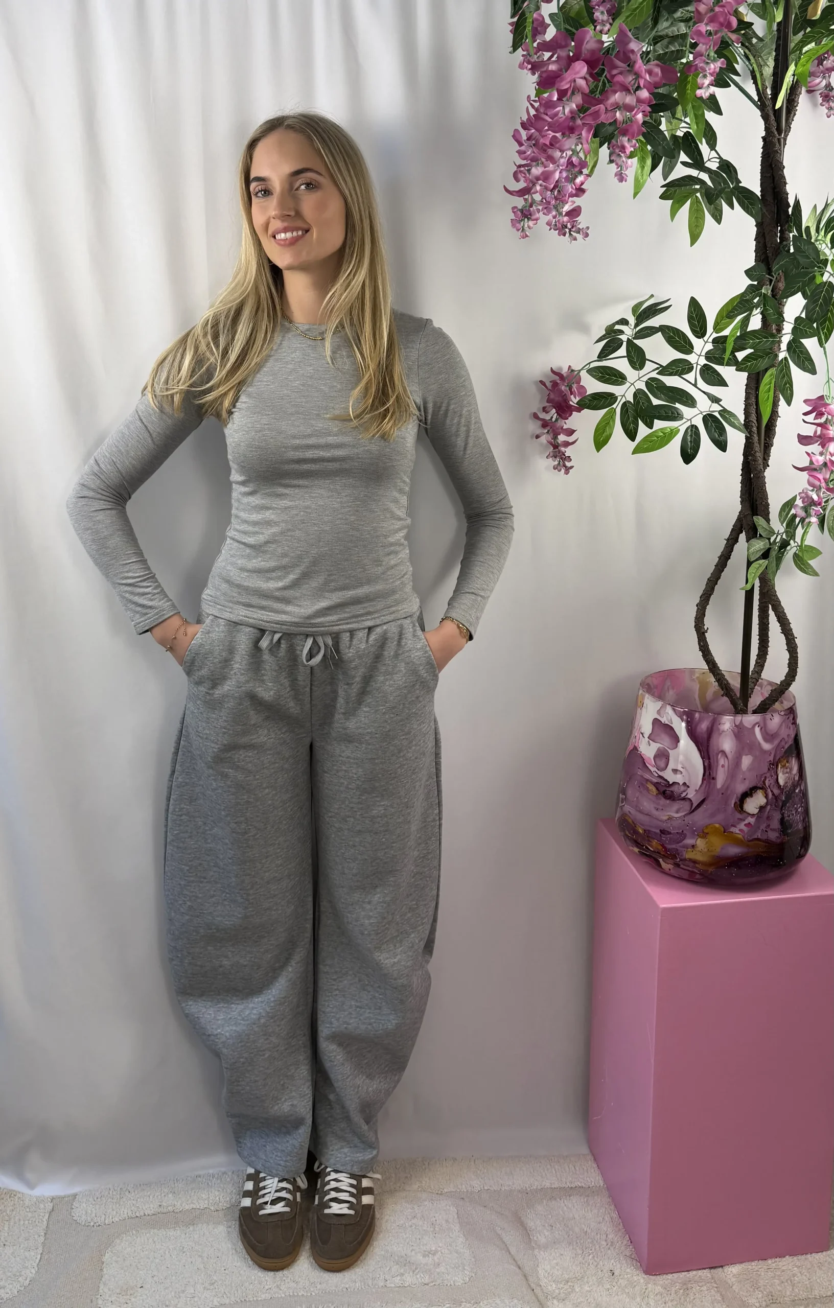 Laura jogging ballon pants is een comfortabele jogging broek in een grijze kleur met een trendy ballon fit. De zachte stof zorgt voor een fijne pasvorm, terwijl het model je outfit een moderne en casual uitstraling geeft. Perfect om te combineren met een sweater, T-shirt of blouse voor een stijlvolle, maar comfortabele look.
