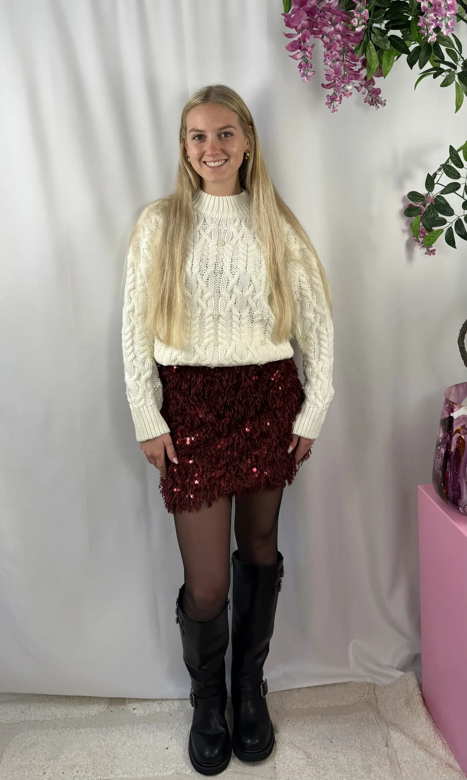 Een supermooi verenrokje met schitterende pailletten in dé trendkleur: bordeaux!