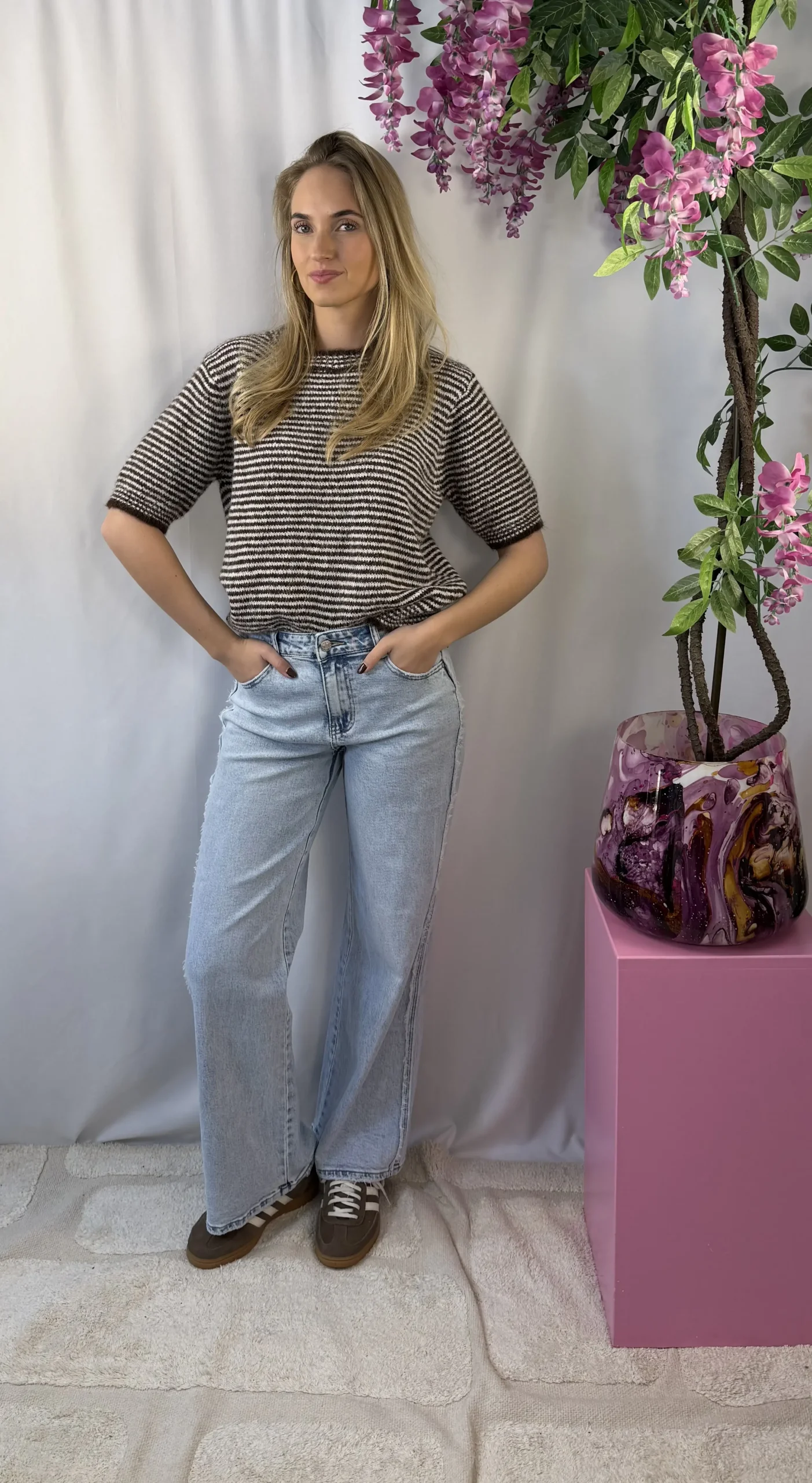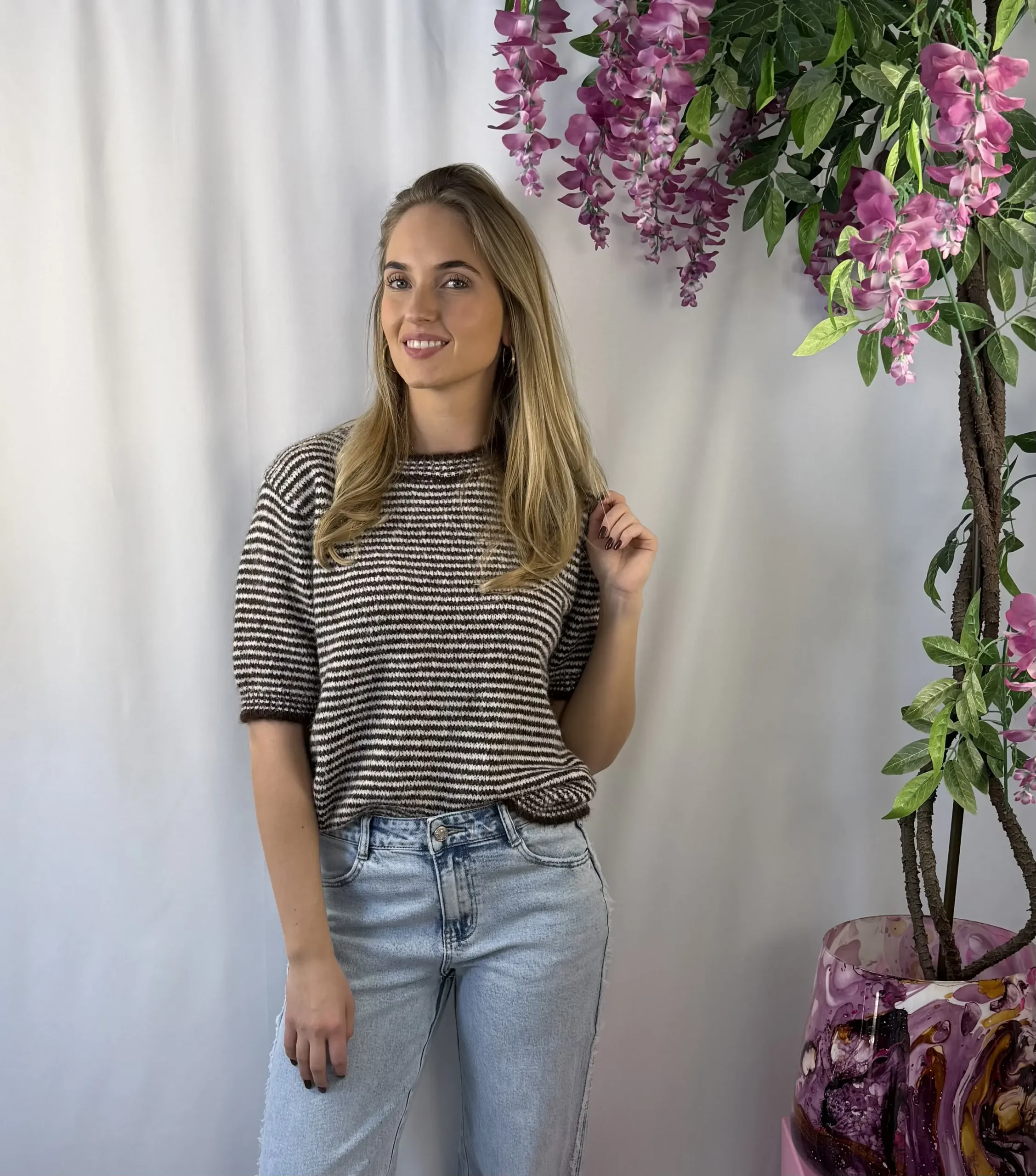 Linde Stripe sweater is een lichtgebreide sweater met korte mouwen in een stijlvolle bruin-witte streep. De zachte knit en tijdloze kleuren geven dit item een comfortabele maar toch trendy uitstraling. Dankzij het one size model is de sweater makkelijk te dragen en perfect te combineren met zowel een jeans als een rok voor een casual-chique look.