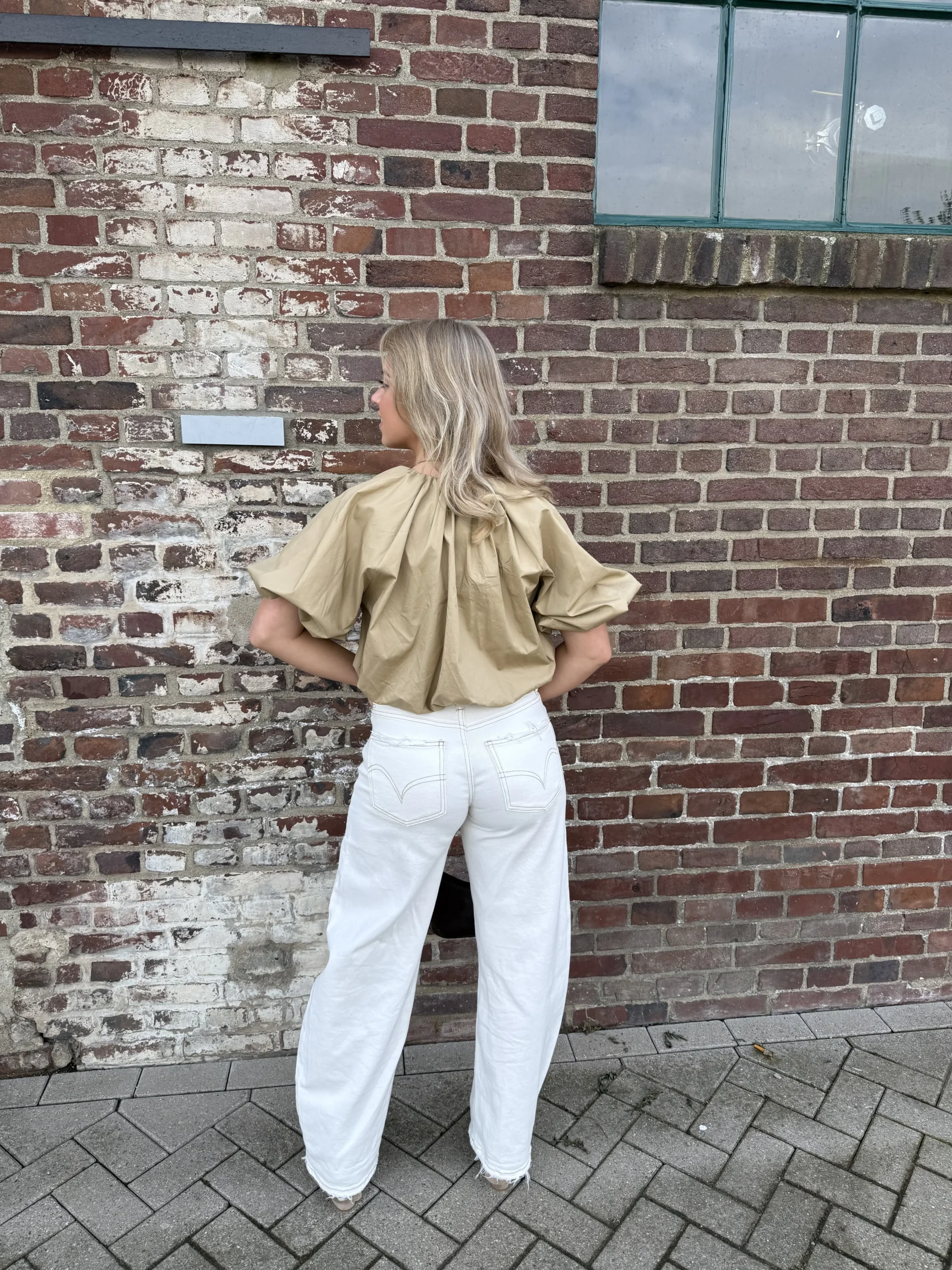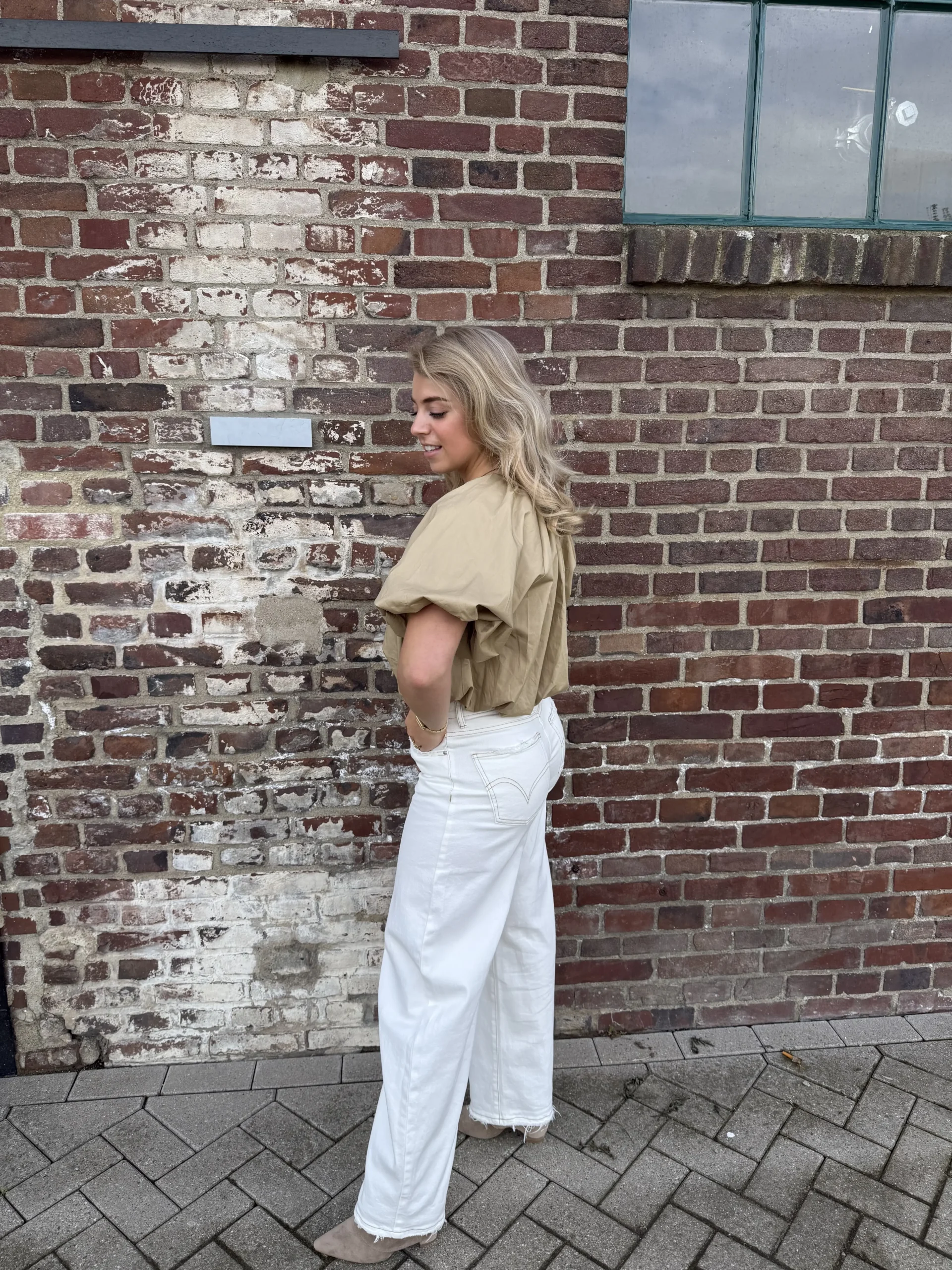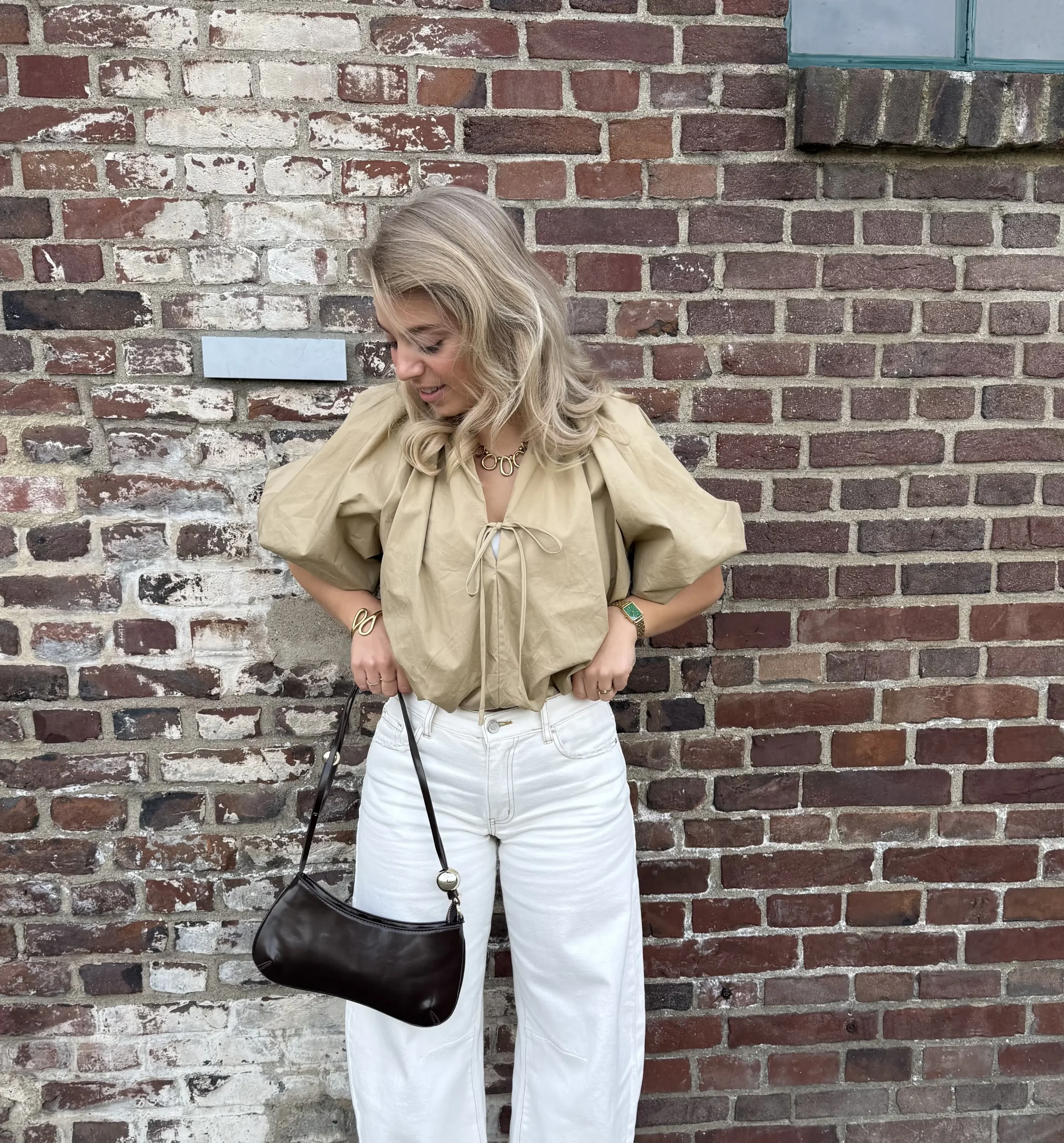 Liora blouse camel is een speelse en stijlvolle blouse met een mooie vrouwelijke uitstraling. De korte, pofferige pasvorm en elastische tailleband zorgen ervoor dat de blouse mooi blouset en je silhouet flatterend uitkomt. De V-hals en het strikdetail geven een elegante en trendy touch. Perfect om te combineren met een jeans, rok of pantalon voor een frisse look.