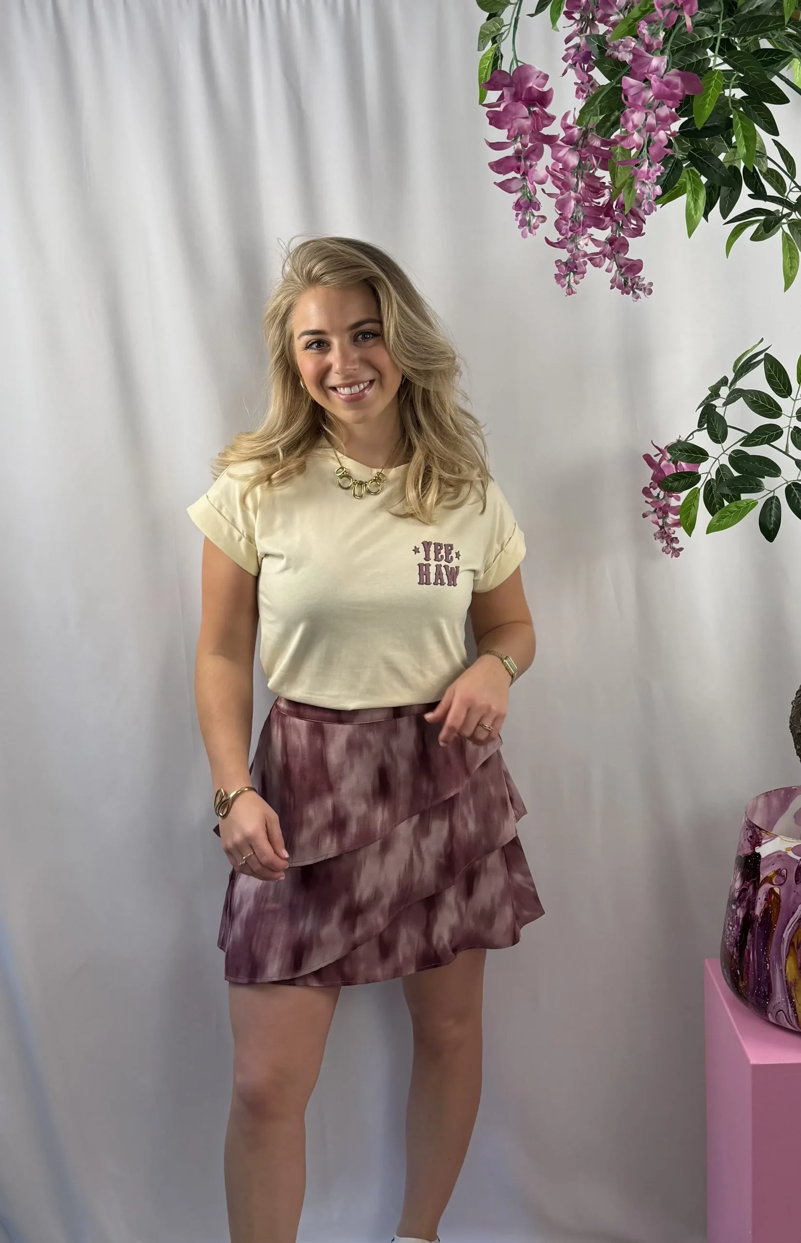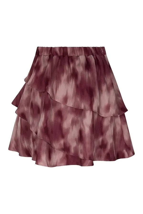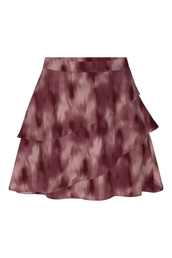 Rok Ayra van Lofty Manner is een vrouwelijke mauve ombre rok met een verfijnde print en een speelse uitstraling. De volantdetails zorgen voor mooie beweging, terwijl de elastische tailleband aan de achterkant zorgt voor extra comfort. Een stijlvolle rok die perfect is voor zowel een casual als een geklede look.