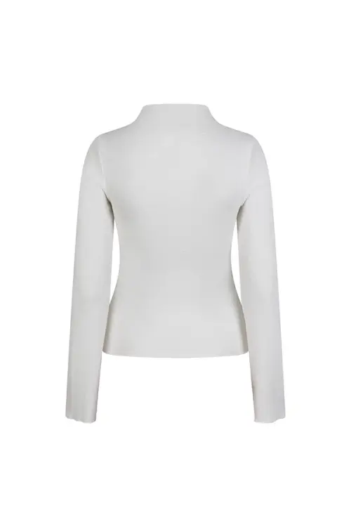 Top Amber is een prachtige witte aangesloten top van Lofty Manner. De top heeft een elegante opstaande kraag en sluit mooi aan op het lichaam voor een vrouwelijke, strakke fit. Dankzij de stretchstof zit hij heerlijk comfortabel en vormt hij zich mooi naar je lichaam. Perfect om te dragen onder een blazer, vest of gewoon als stijlvolle basic op een rok of jeans.