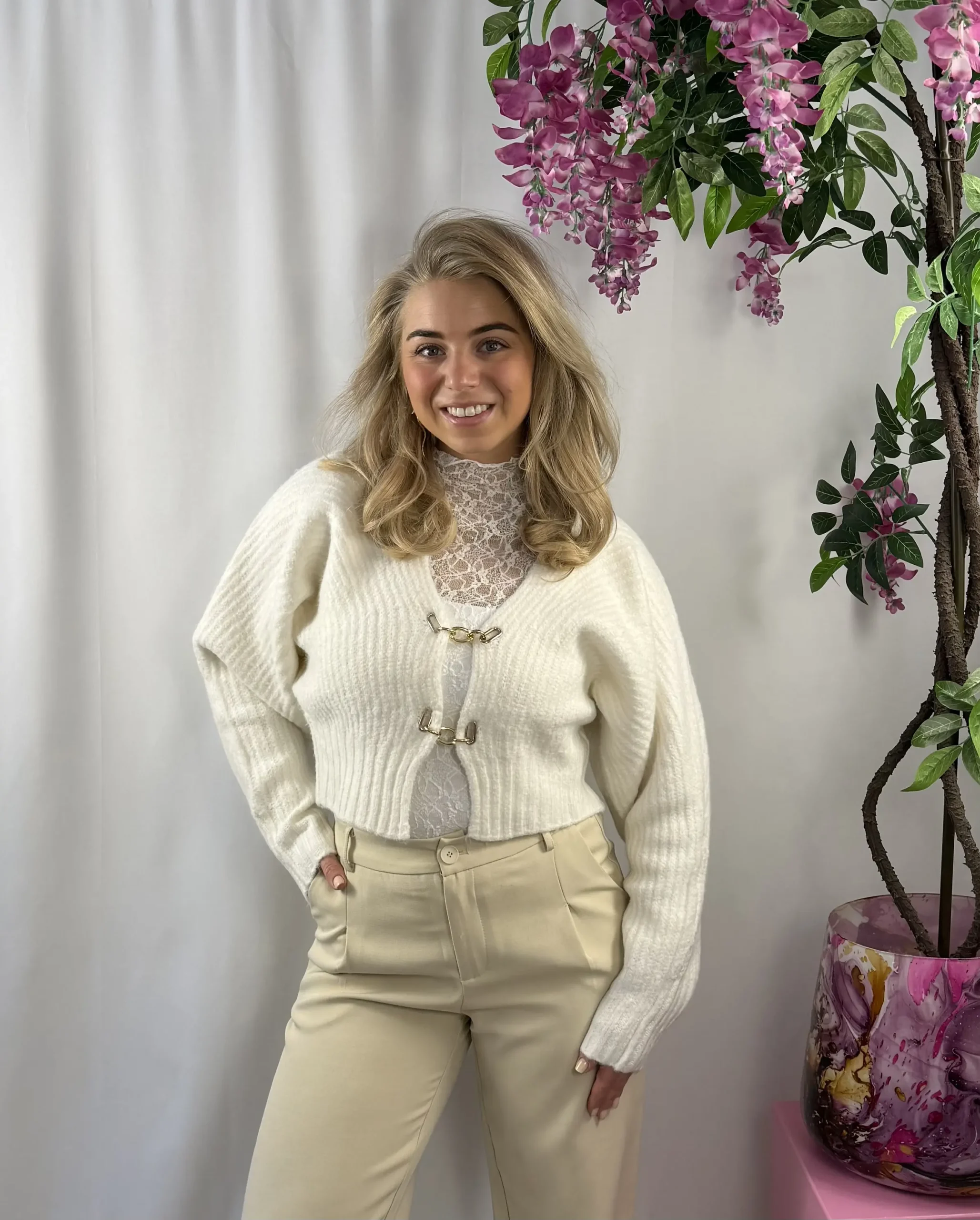 Dit prachtige vest met gouden details is een echte eyecatcher voor het najaar en de winter. De subtiele gouden accenten geven het vest een luxe en vrouwelijke uitstraling, terwijl de zachte, warme stof zorgt voor optimaal draagcomfort. Perfect om te combineren met een kanten top zoals op de foto, maar ook heel mooi over een basic top of blouse. Een item dat elke outfit direct een stijlvolle upgrade geeft.