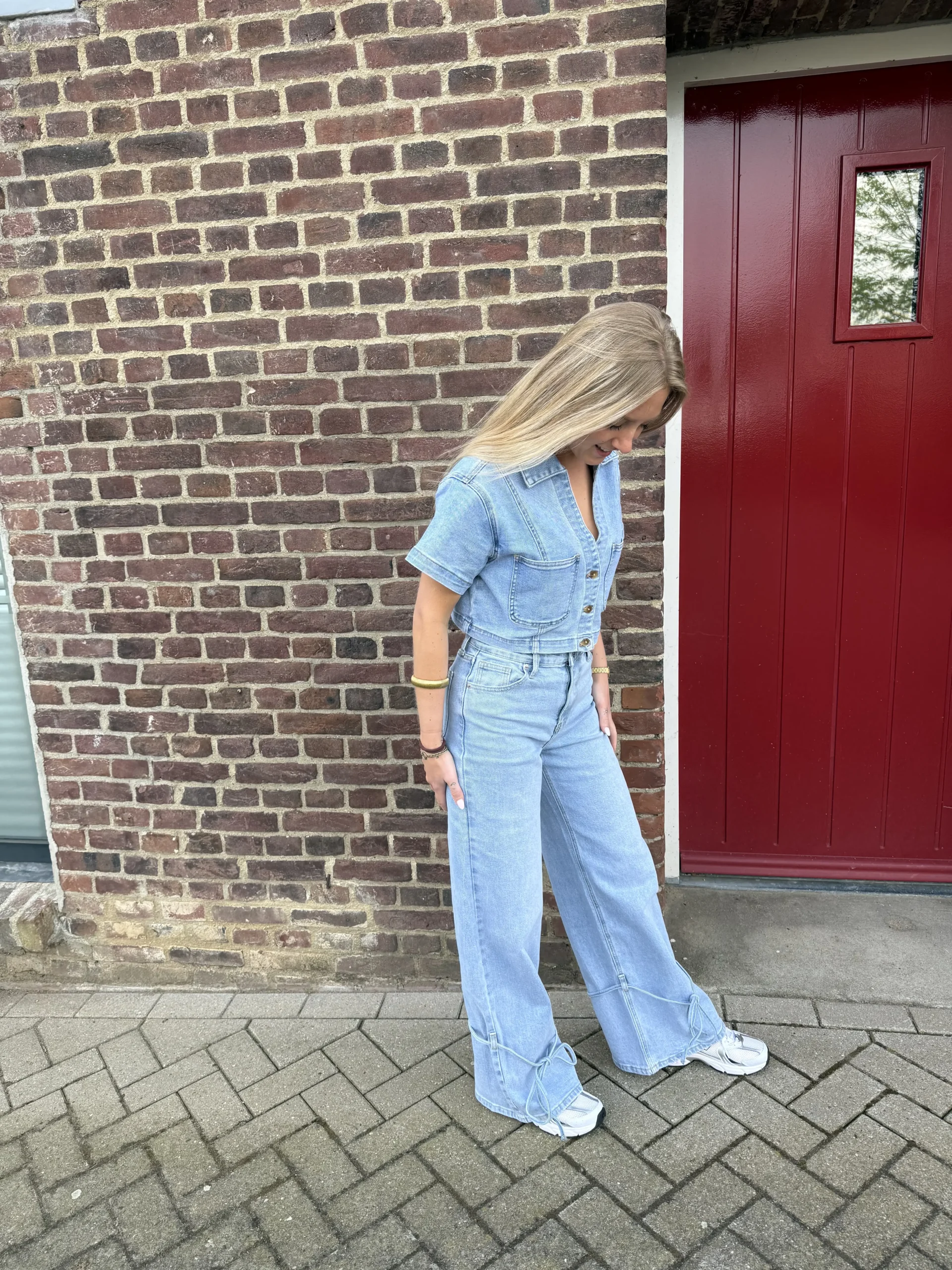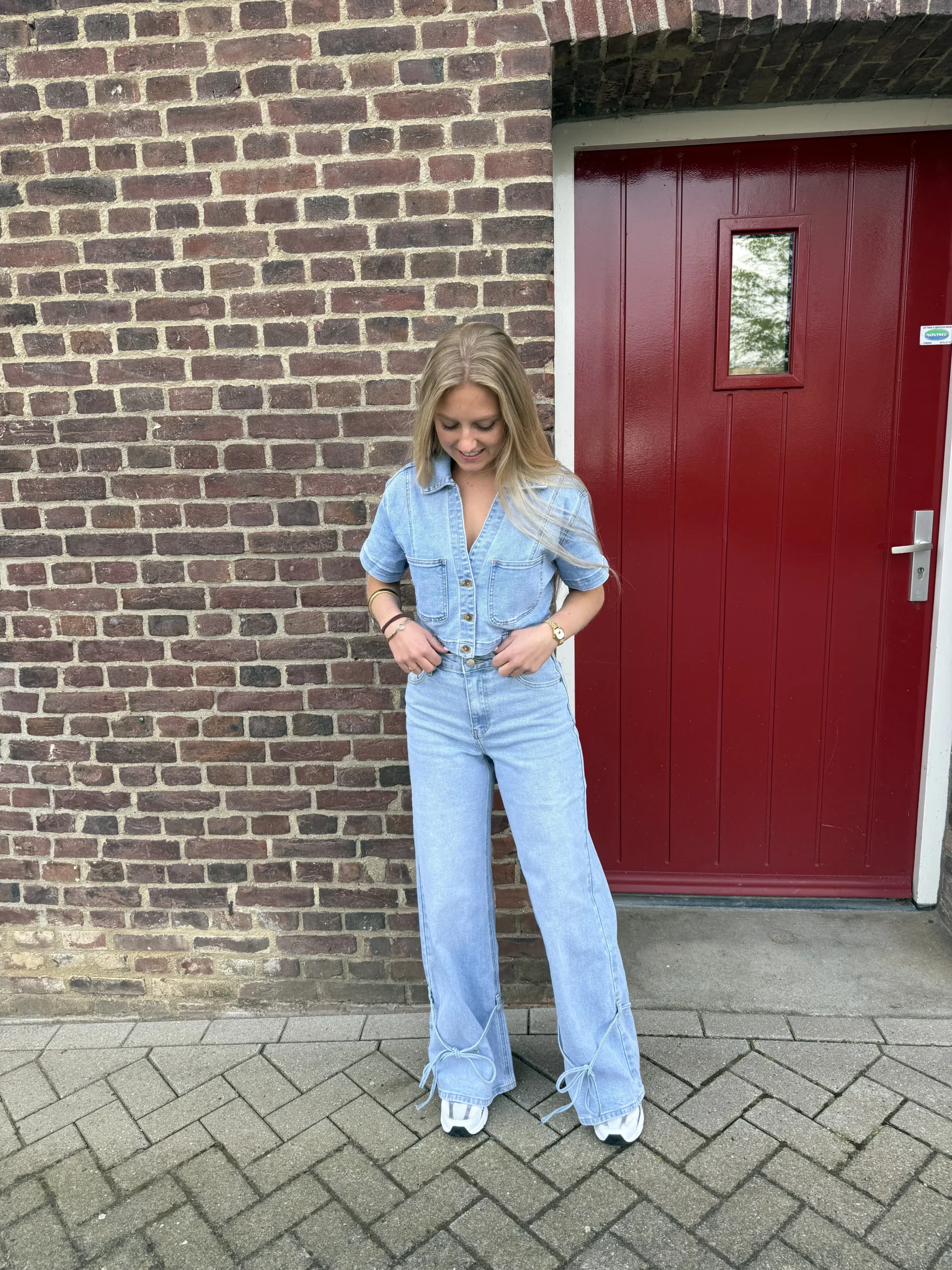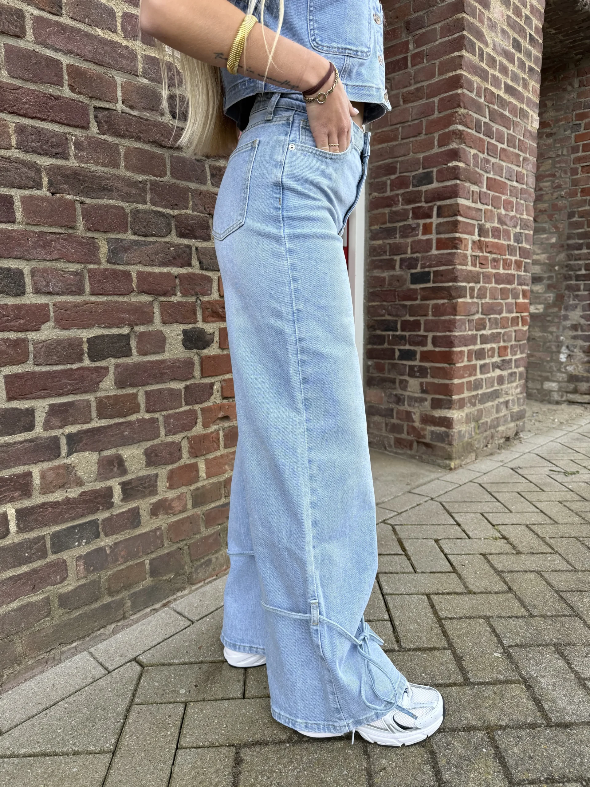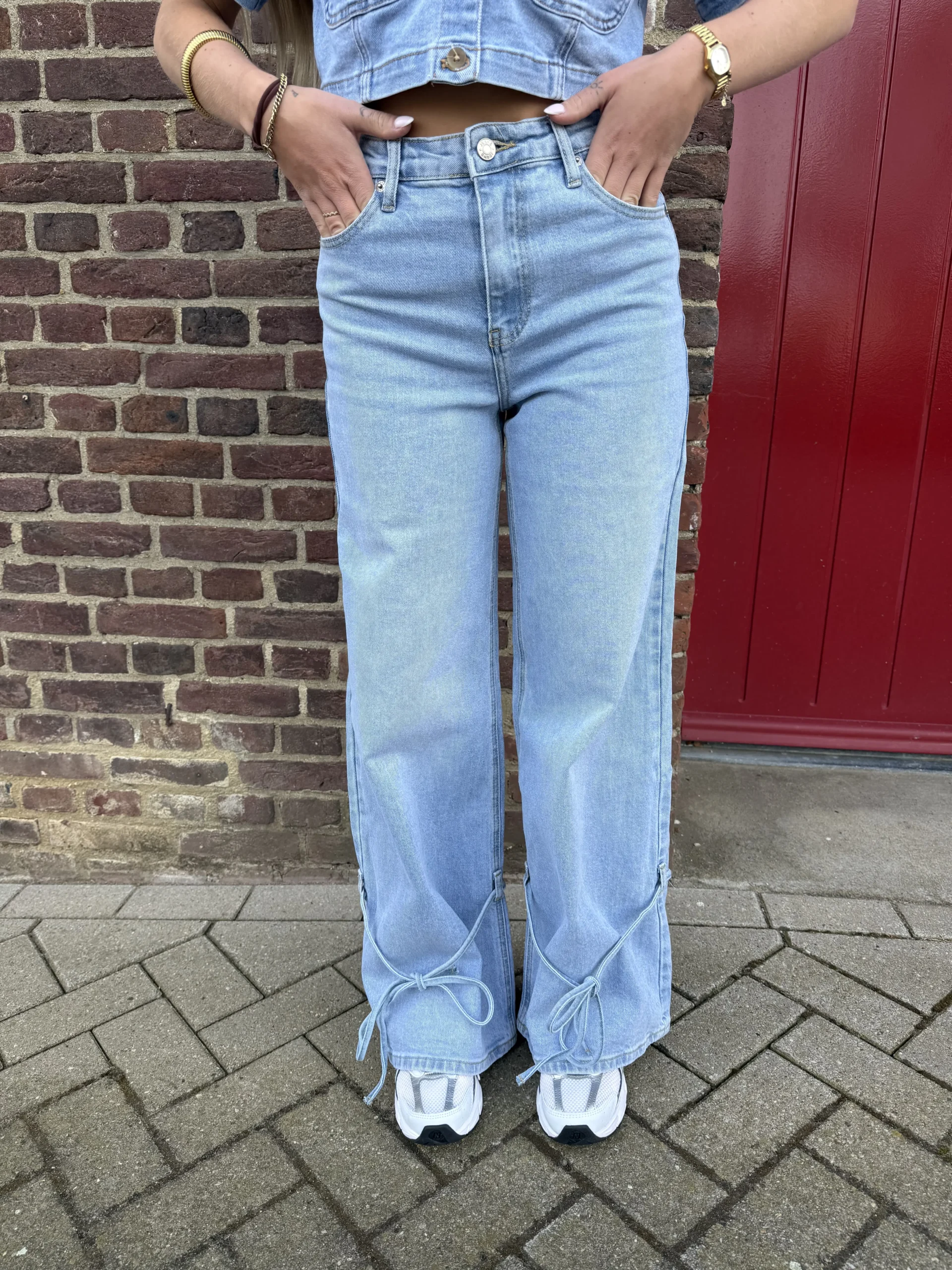 Lorena wide leg strik jeans lichtblauw is een trendy denim met een speelse twist. De wide leg pasvorm zorgt voor een moderne en comfortabele fit, terwijl het strikdetail aan de onderkant van de broek een uniek en vrouwelijk accent toevoegt. De lichte wassing maakt deze jeans perfect voor een frisse en casual look.