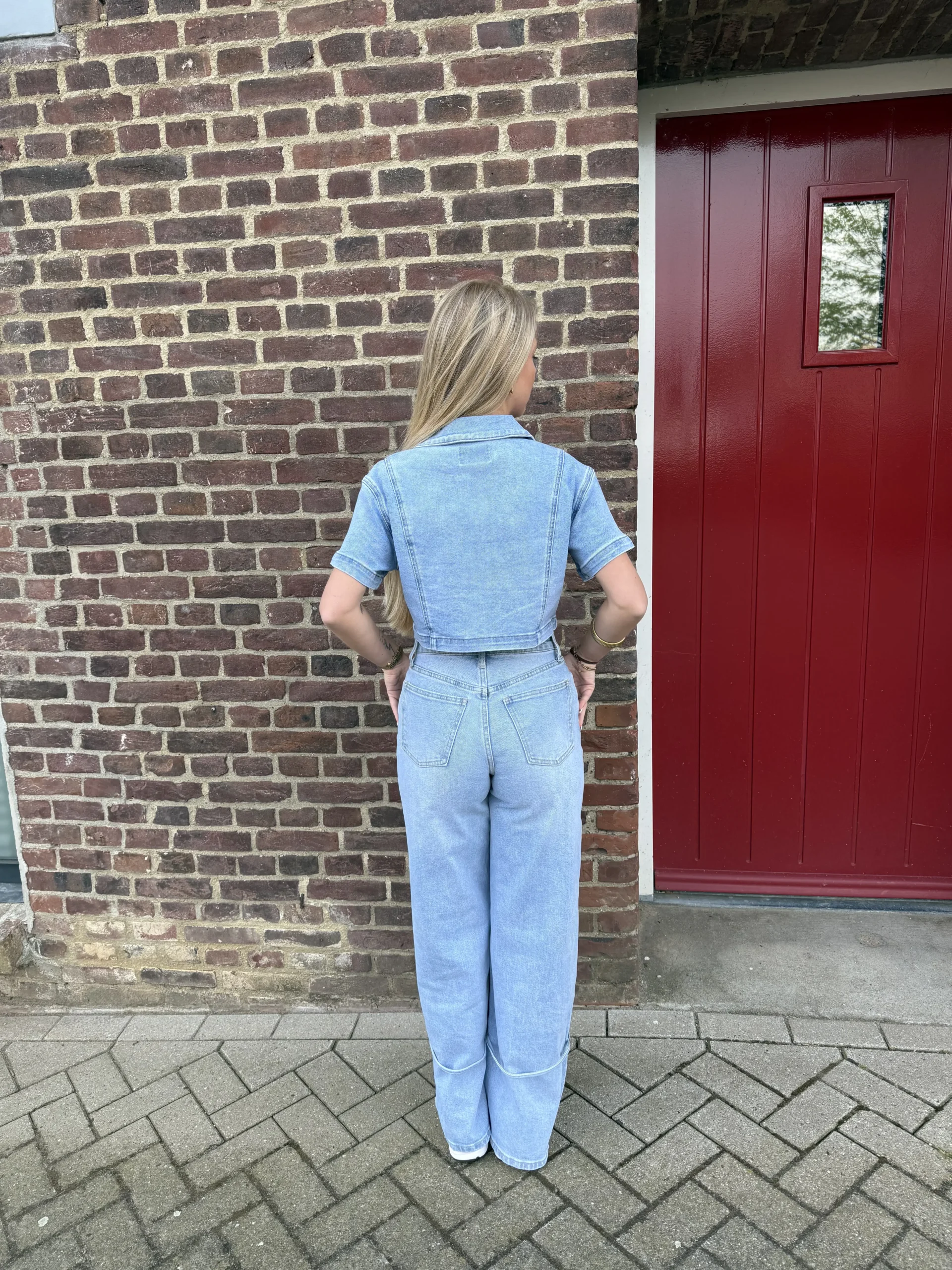 - Kleur: Lichtblauw denim