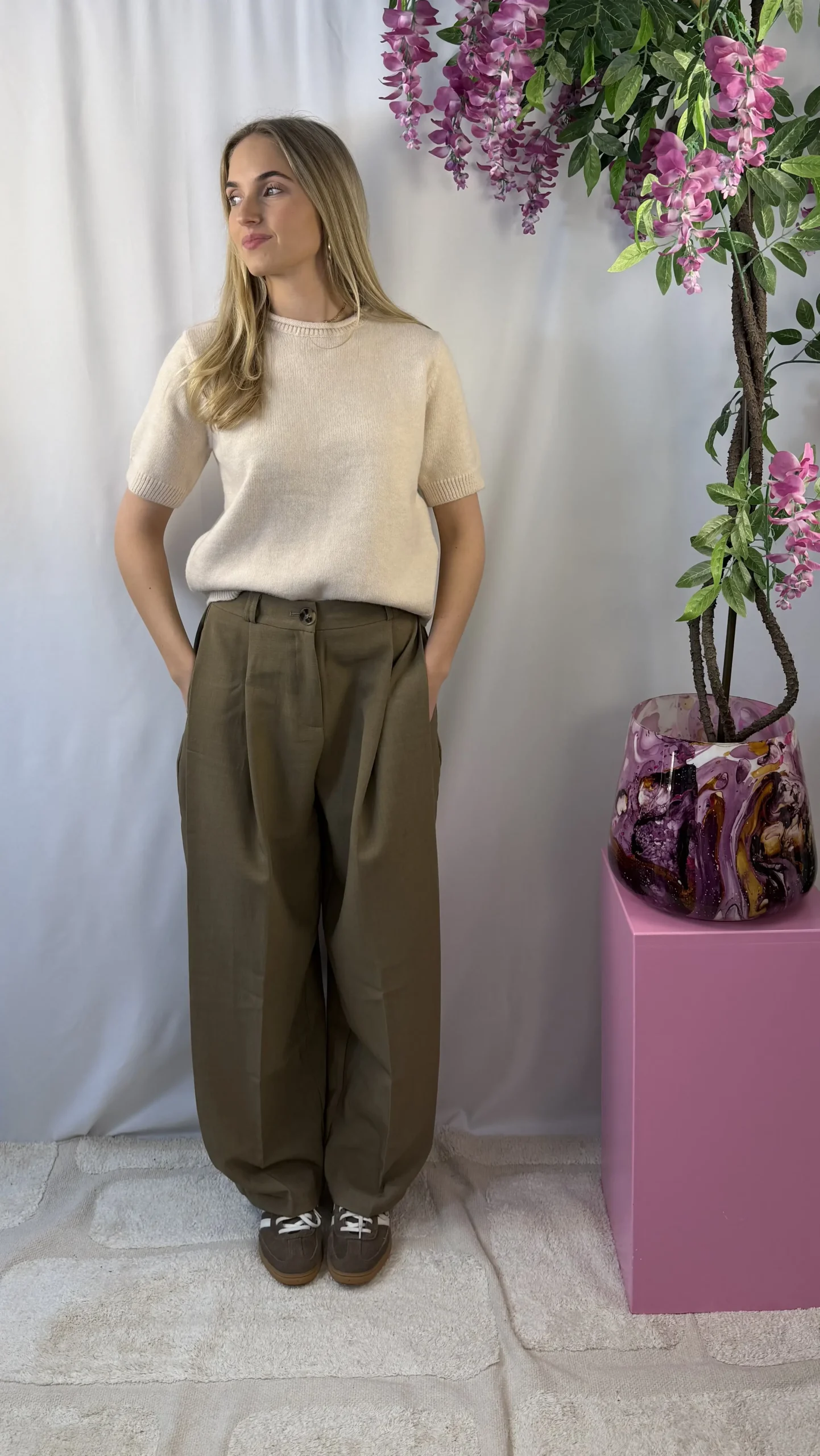 Malin pantalon is een stijlvolle pantalon in een donkerbeige kleur met een elegante en tijdloze uitstraling. Dankzij het mooie silhouet en het comfortabele materiaal is deze pantalon perfect voor zowel een zakelijke look als een casual-chique outfit. Combineer hem met een blouse, top of gilet voor een moeiteloos stijlvolle look.