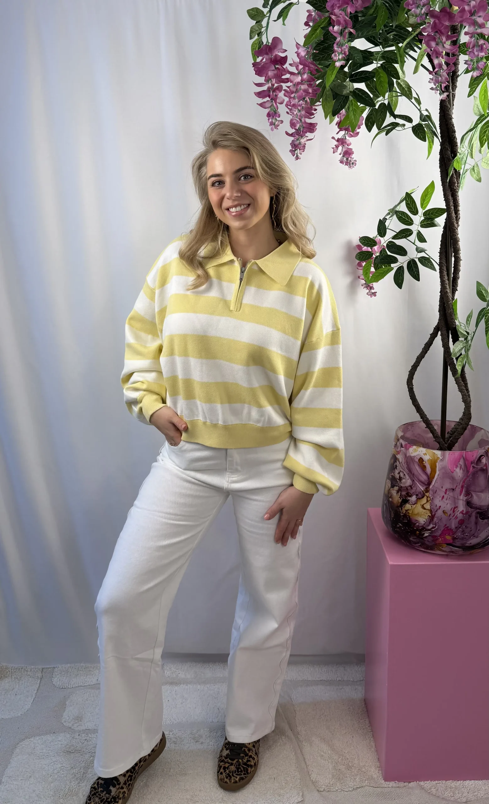 Deze prachtige oversized zipper sweater is gemaakt van een soepele stof die heerlijk comfortabel draagt. De relaxte fit en de rits geven het item een moderne en casual uitstraling. Perfect voor het voorjaar en makkelijk te combineren met een jeans of pantalon voor een stijlvolle, effortless look.