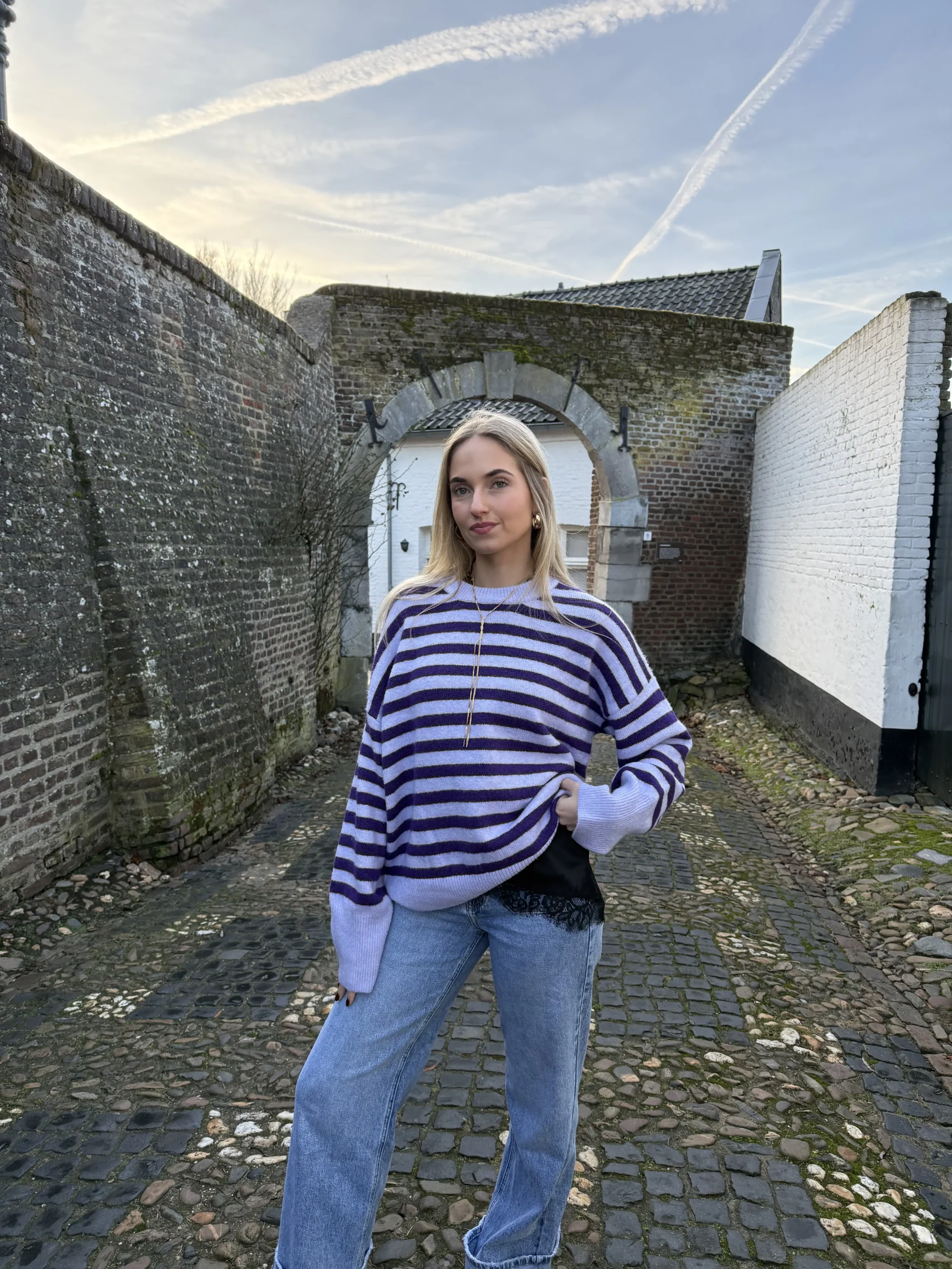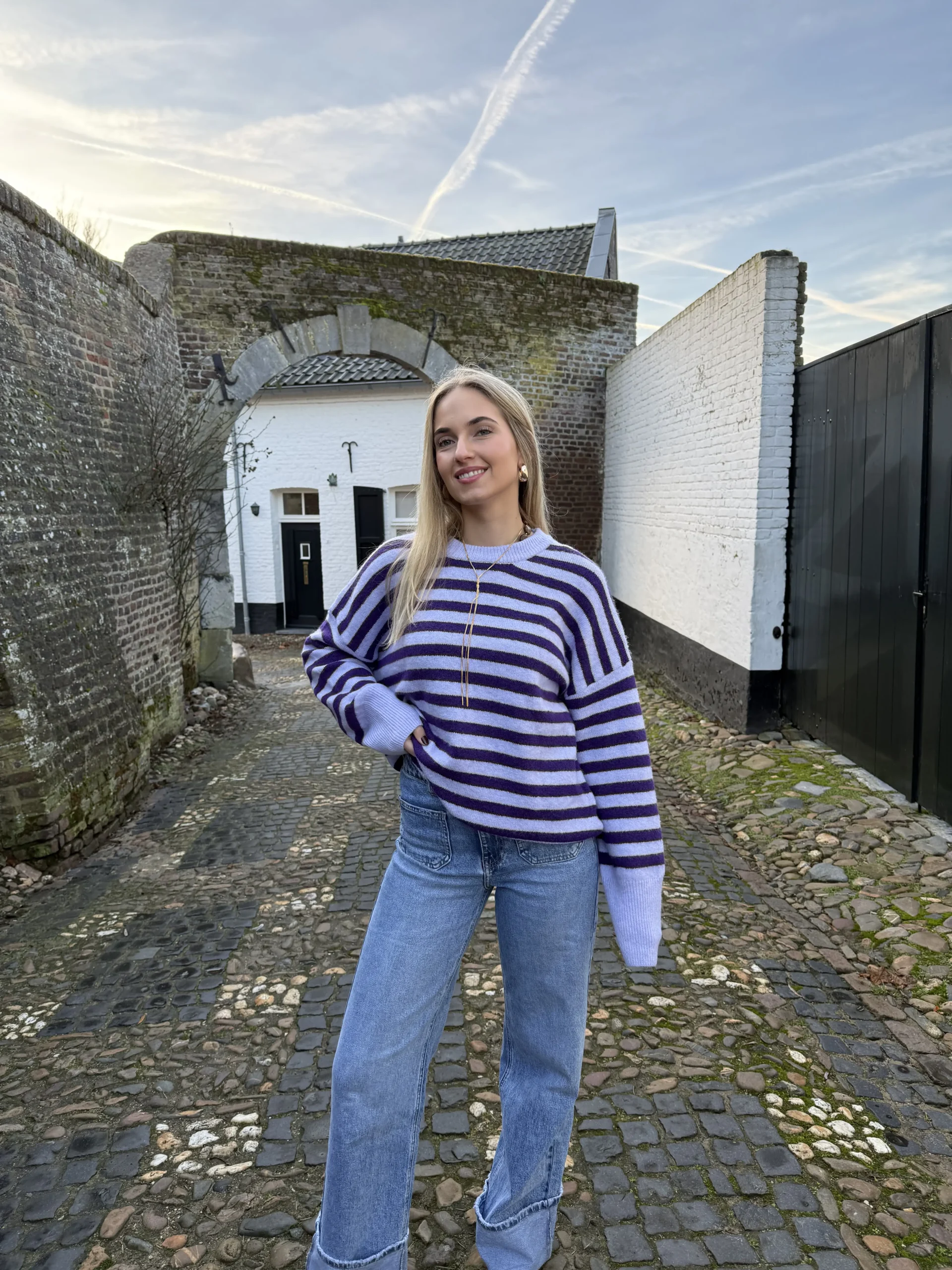 Gestreepte paarse sweater – vrolijk, comfy & helemaal on-trend