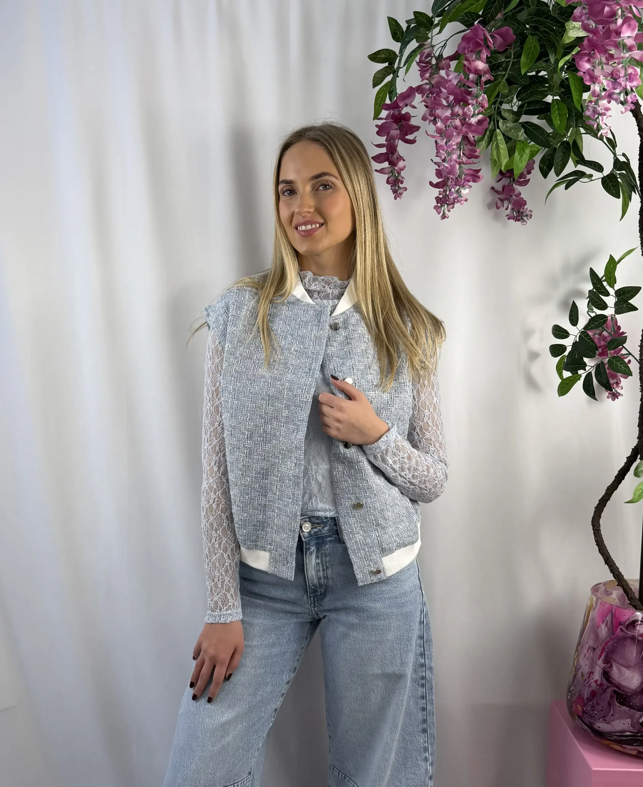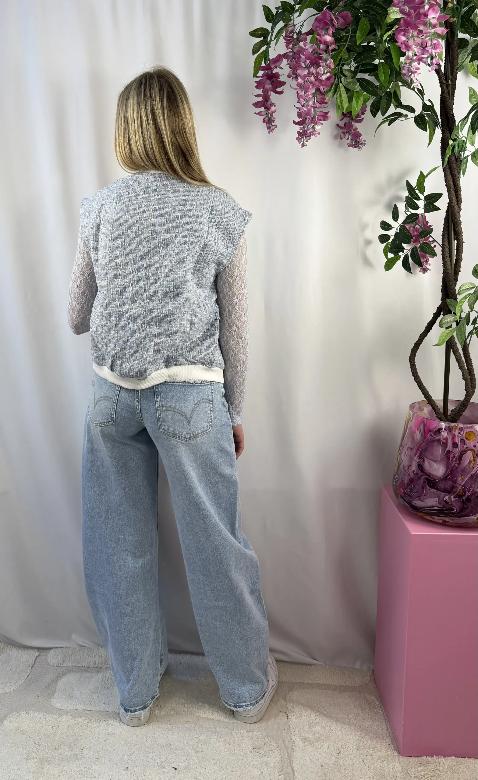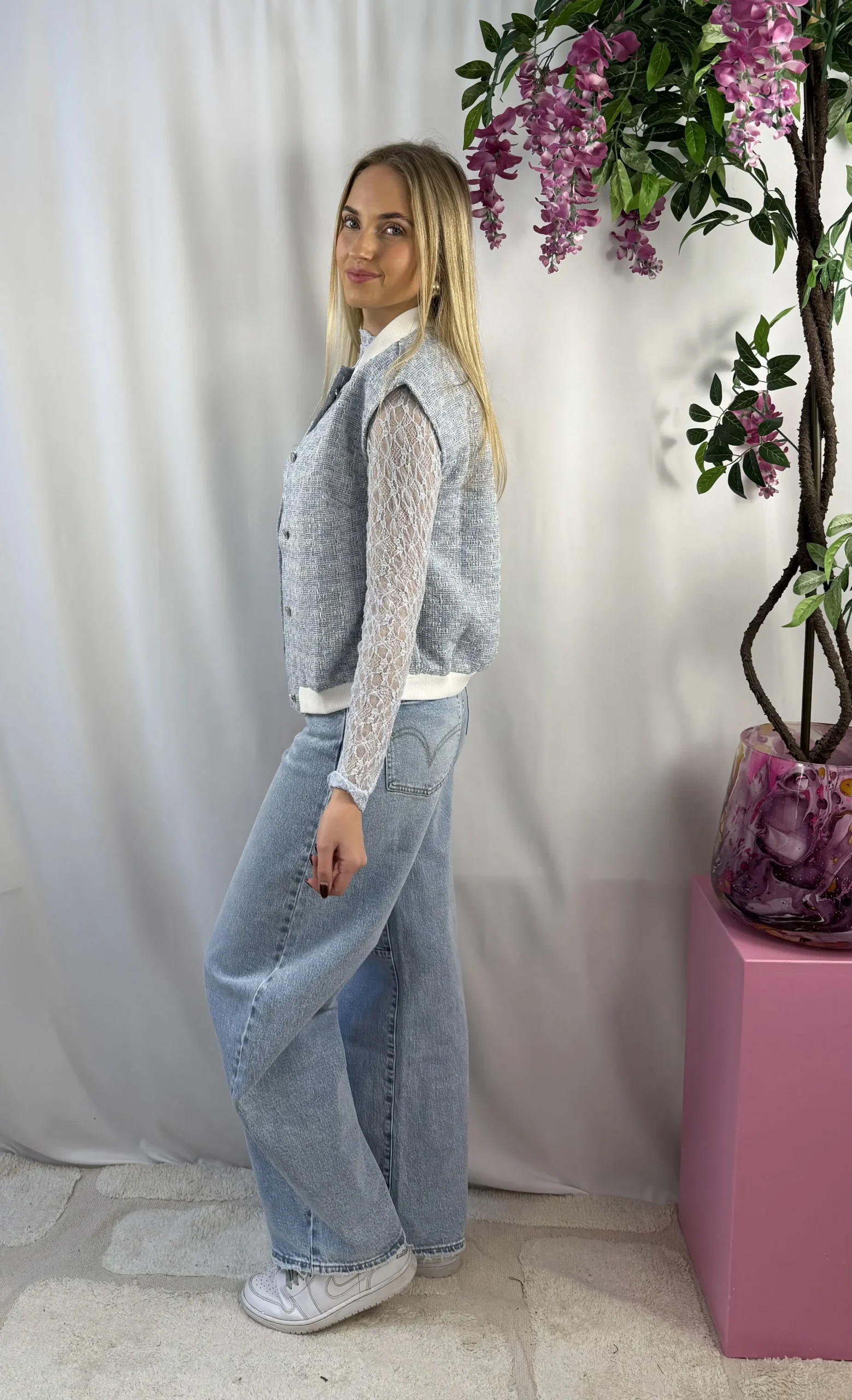 Lichtblauwe gilet met witte en beige accenten – fris, stijlvol & perfect voor het voorjaar
